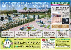 2019年2月11日 / 最終更新日 : 2019年2月28日 numaz-ht-toukou 新着情報 ペット縁テラスが誕生! ペットの眠る供養塔が完成しました。 納骨、合祀(埋葬)とも対応いたします。 納骨(3年)2.5万円 合祀1.8万円 ※税別 ※管理料不要